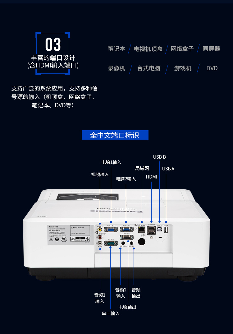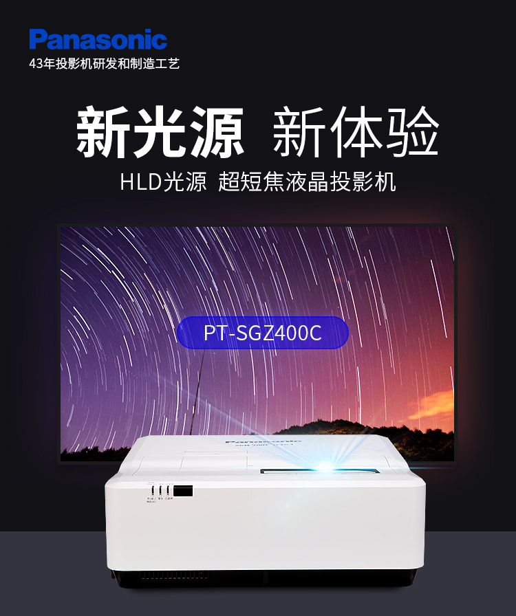 松下(Panasonic)PT-SGZ400C 超短焦投影仪 投影机办公教育(全高清 HLD光源 4000流明)