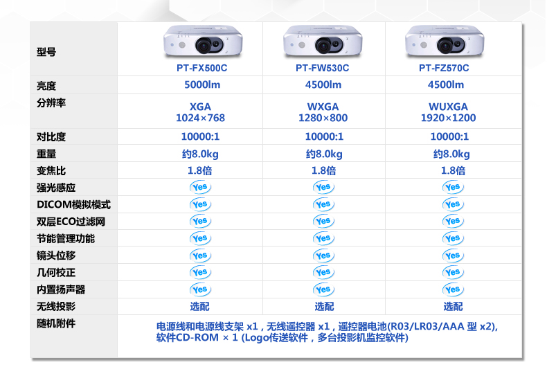 松下(Panasonic) 投影仪PT-FW530C/FZ570C 高清高亮工程 大型会场投影机 PT-FW530C(WXGA) 官方标配